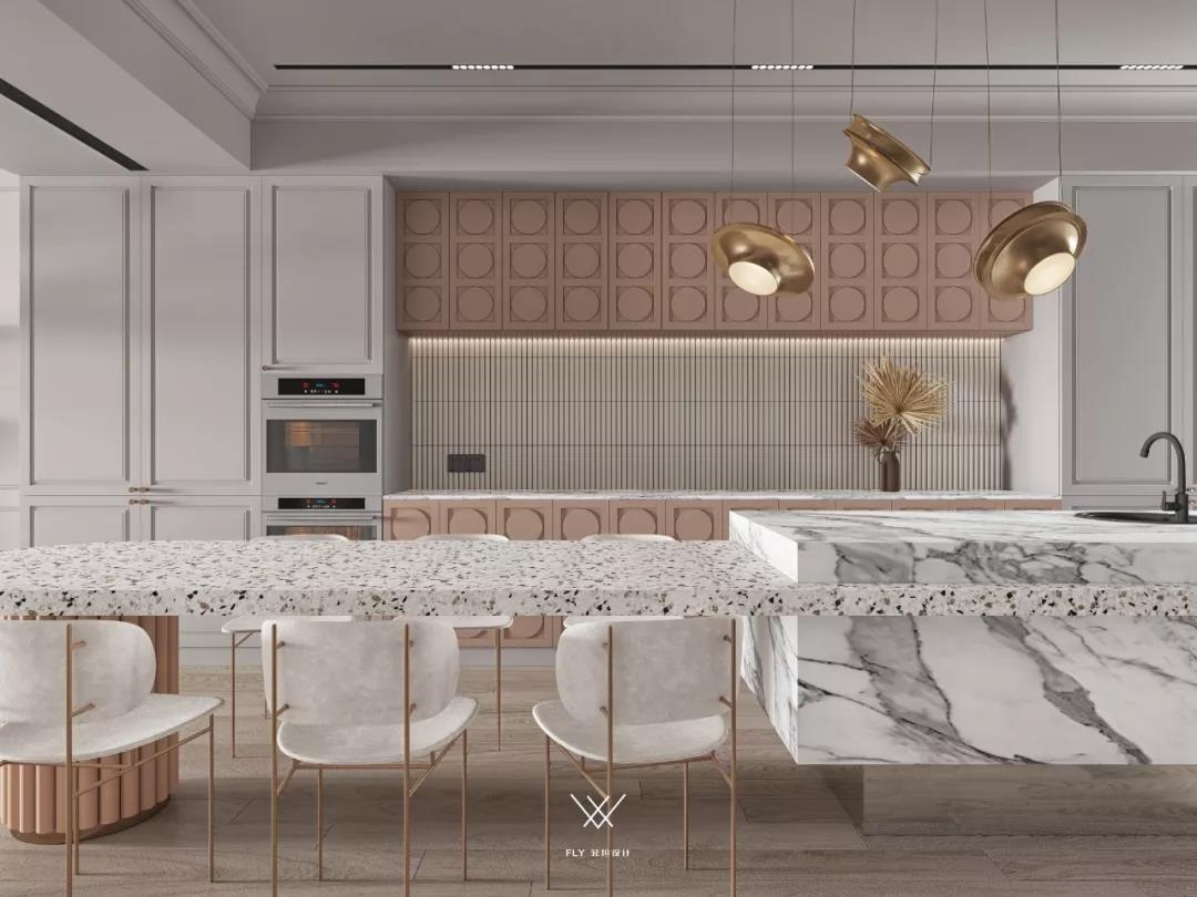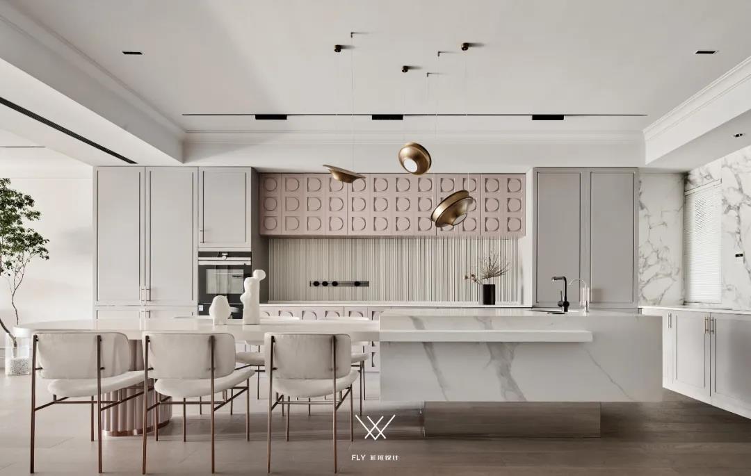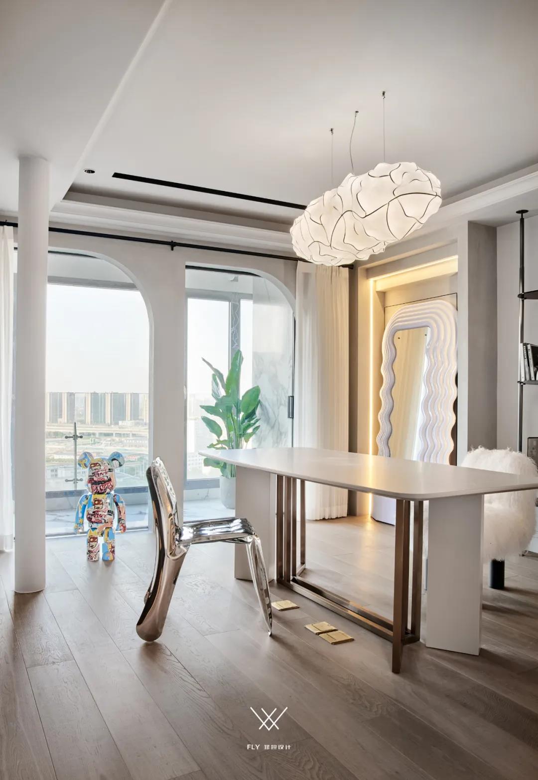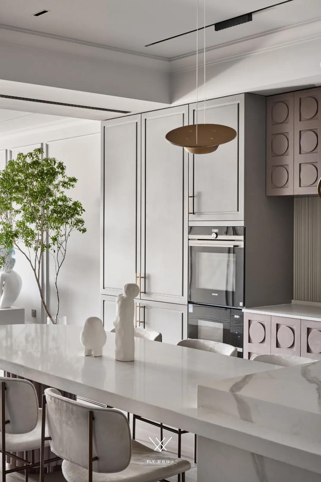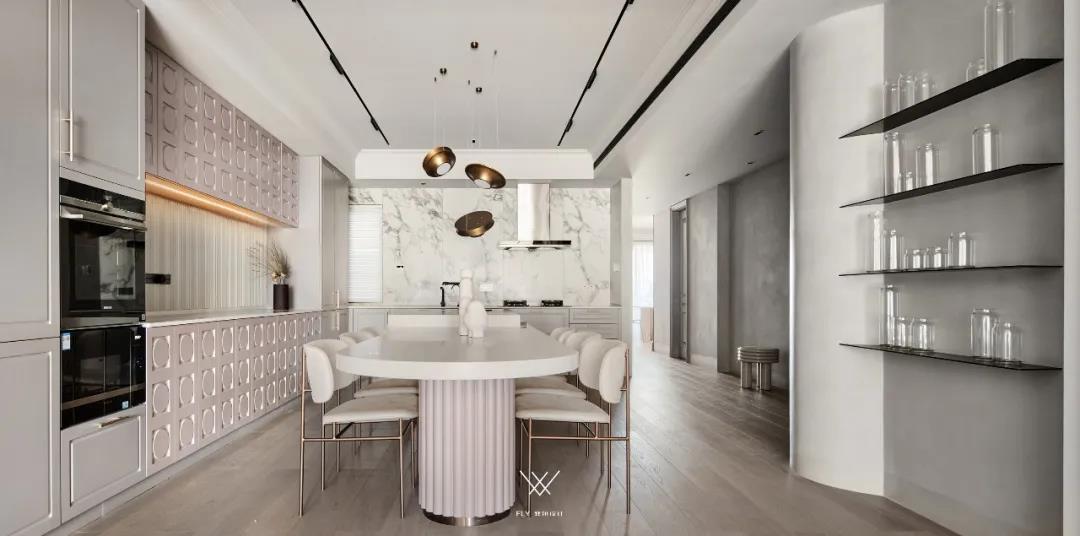 打破餐廳就餐定位,寬綽的島臺對逗逗來說是書寫、插花的操作臺,是拍攝視頻、直播的一角和某次浪漫的燭光晚餐。粉絲們對于餐廳肯定不會陌生,入住之后很多視頻都是在這個區域錄制的,也足以看出逗逗對此區域設計的認可。