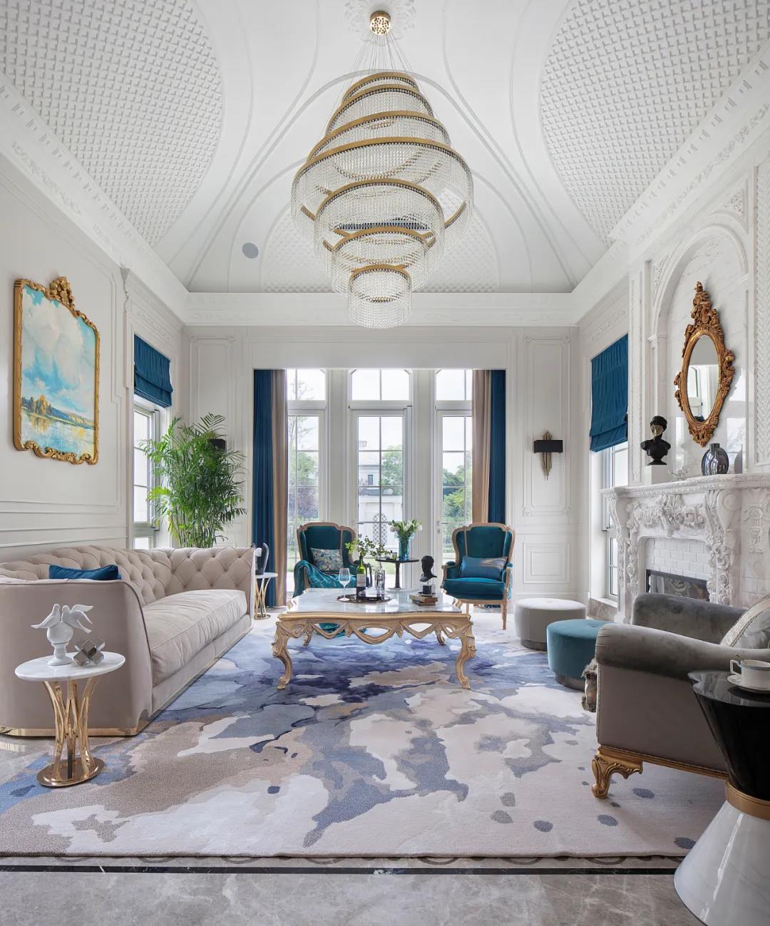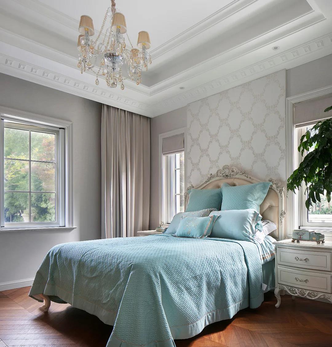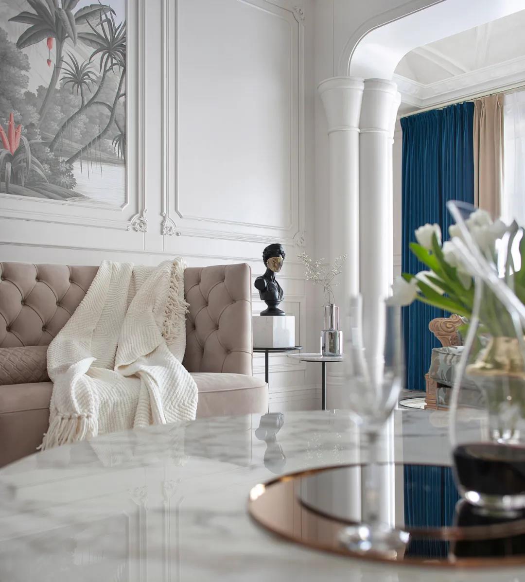 業主喜歡的各色藍點綴在了窗簾布藝掛畫中