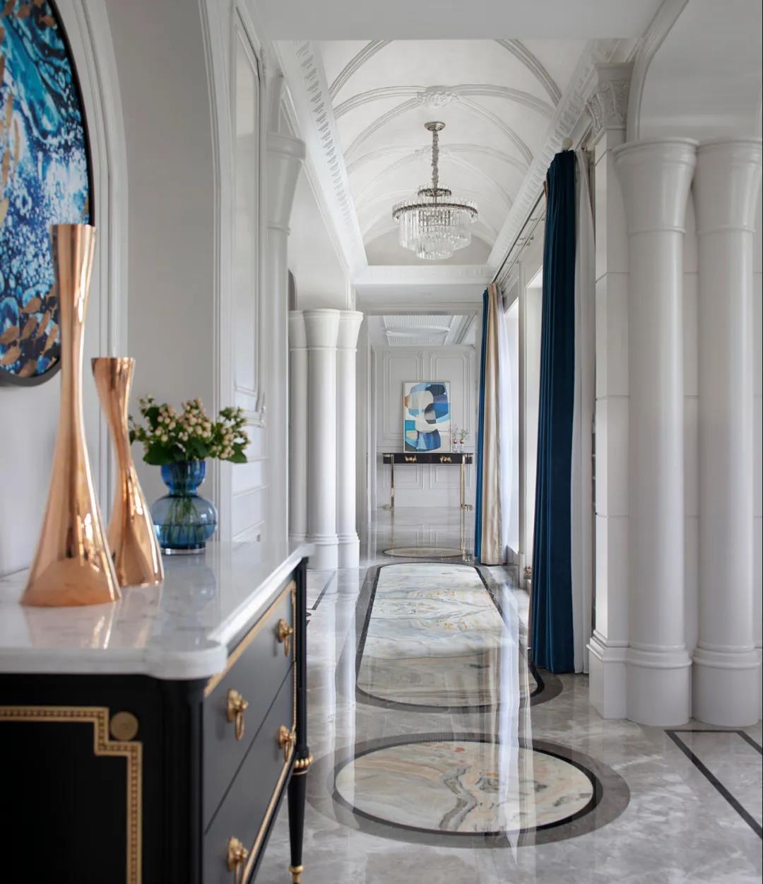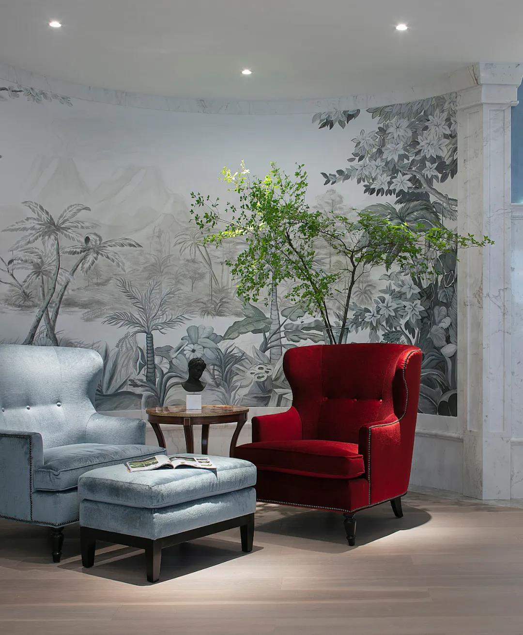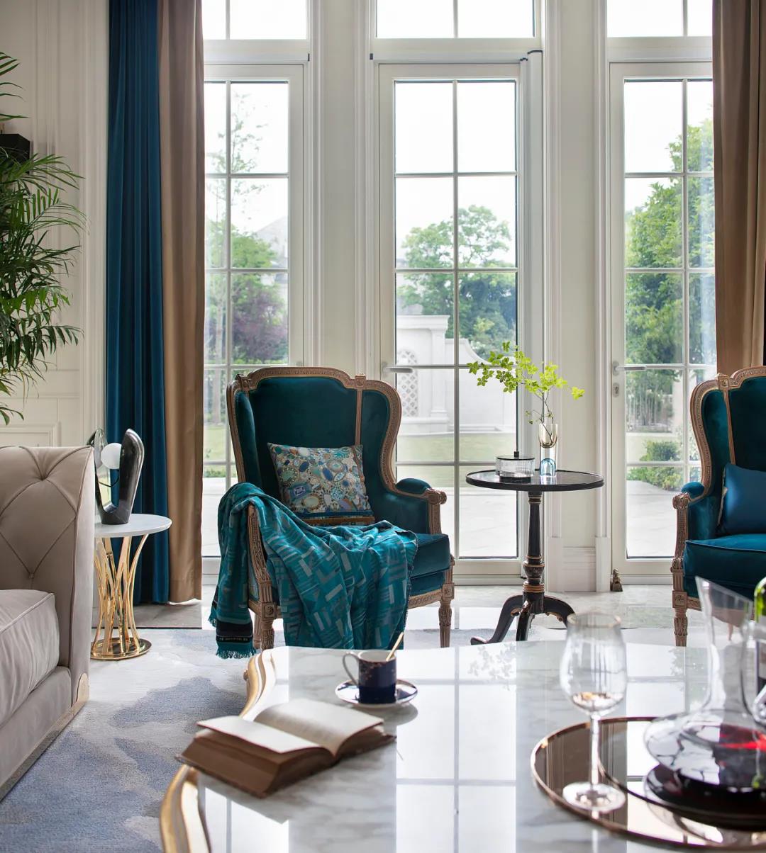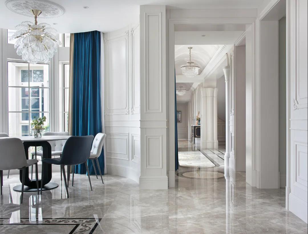 業主喜歡的各色藍點綴在了窗簾布藝掛畫中