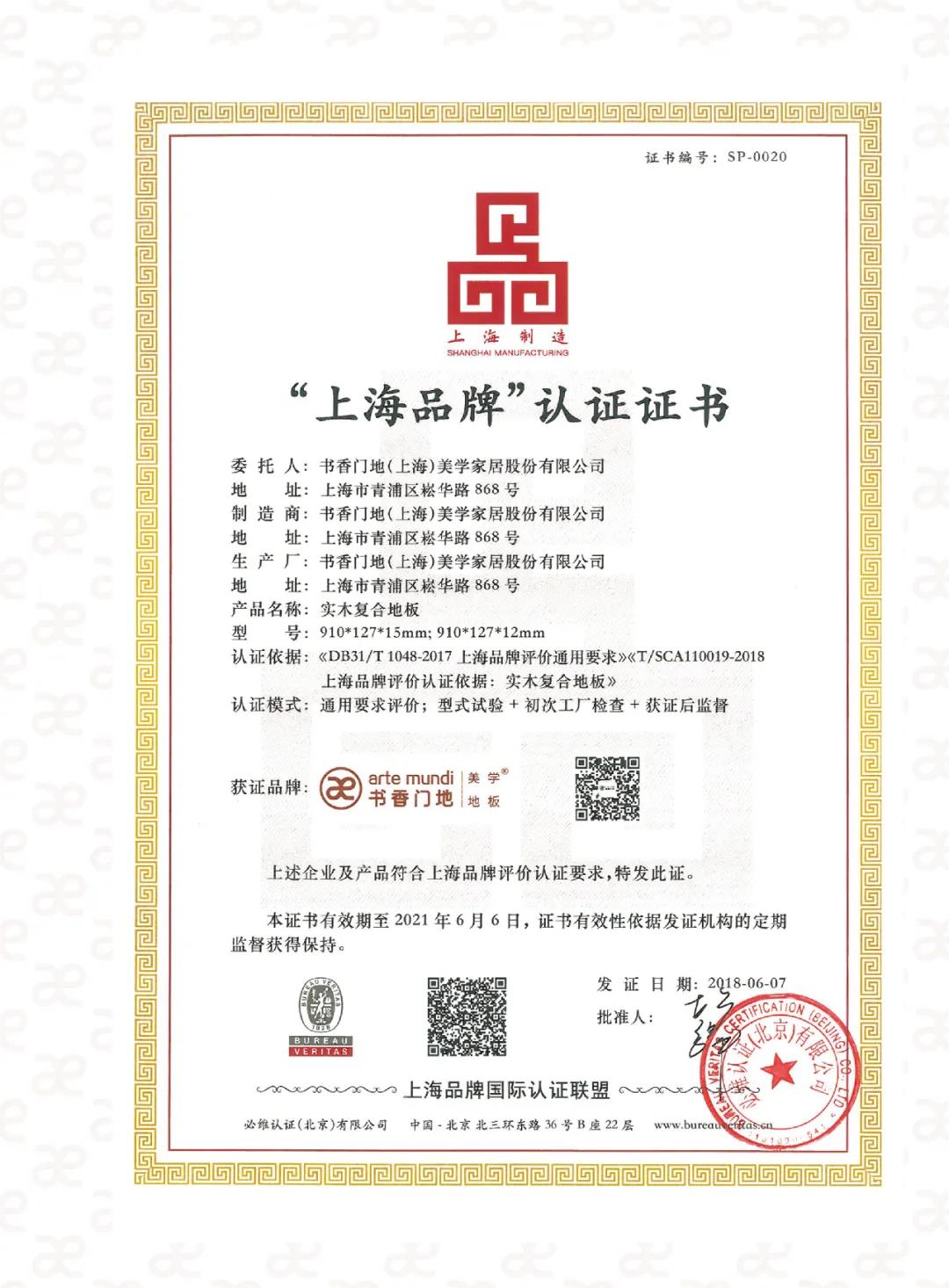 2018年書香門地成為首批獲得上海品牌認證的單位之一,意在再塑“上海品牌”新“金字招牌”,致力于做高質量產品,助消費者樂享品質生活。