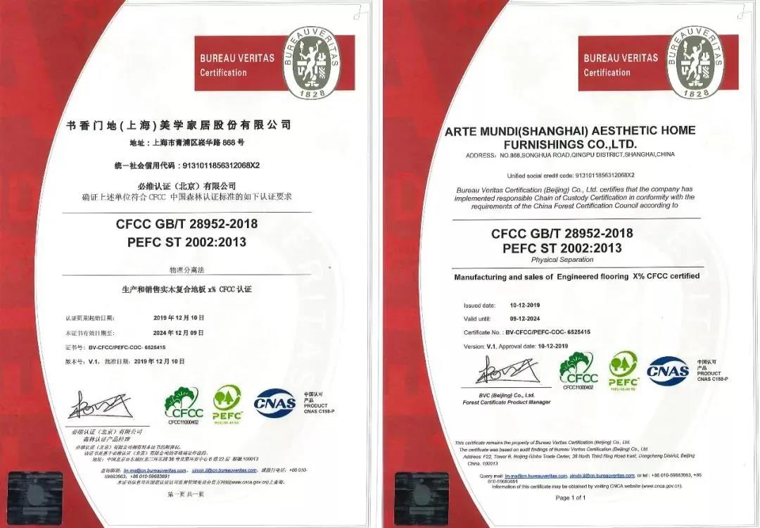 書香門地通過了CFCC-CoC認證審核。書香門地秉承可持續發展經營方針,堅持以綠色循環經濟為發展戰略,積極履行負責任的木材資源采購政策,保證產品生產所需的原料均來自可持續經營的林地,確保整個產銷供應鏈流程符合CFCC-CoC的規定。