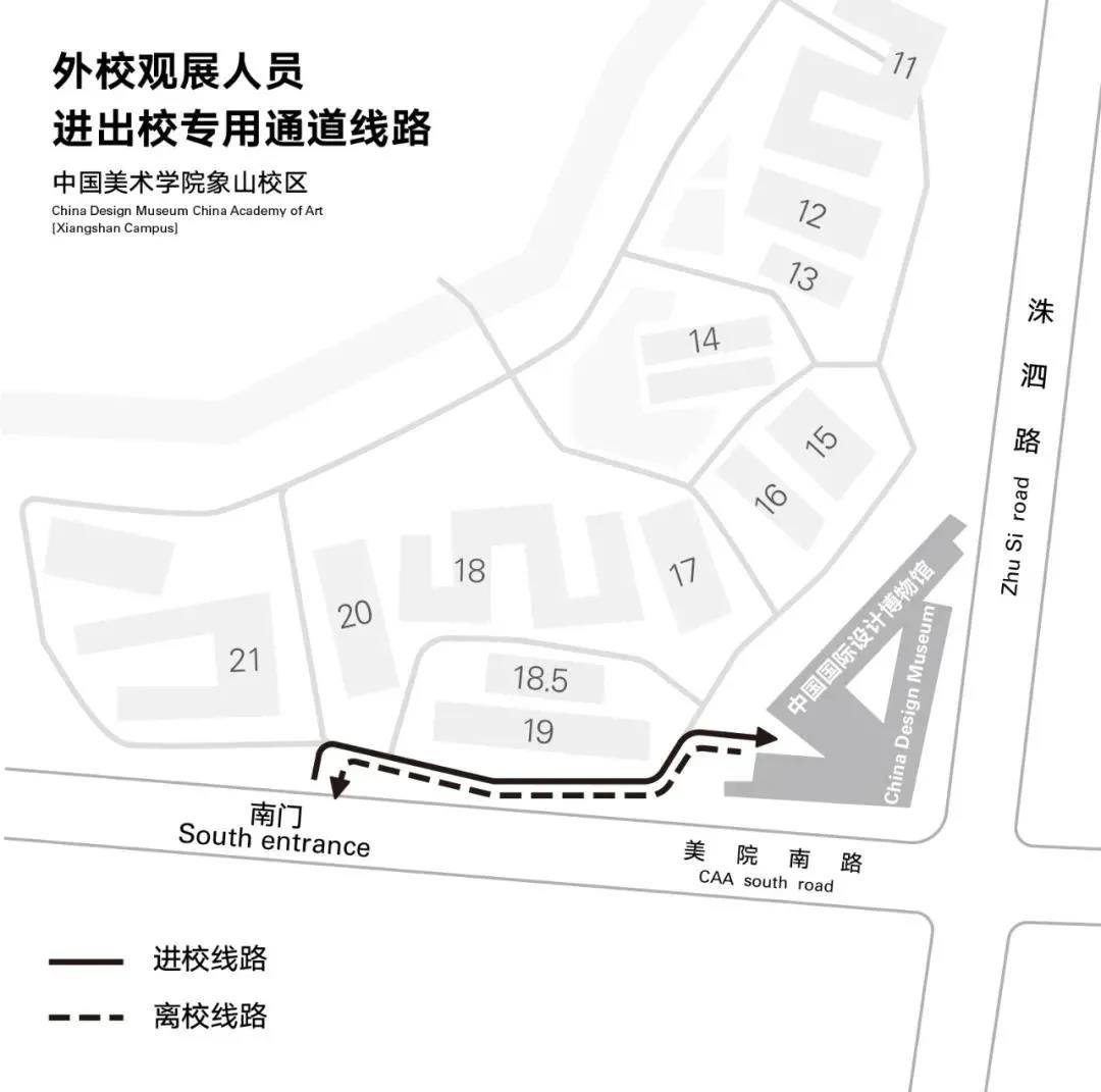 二、校外觀展人員進出校專用通道線路如圖: