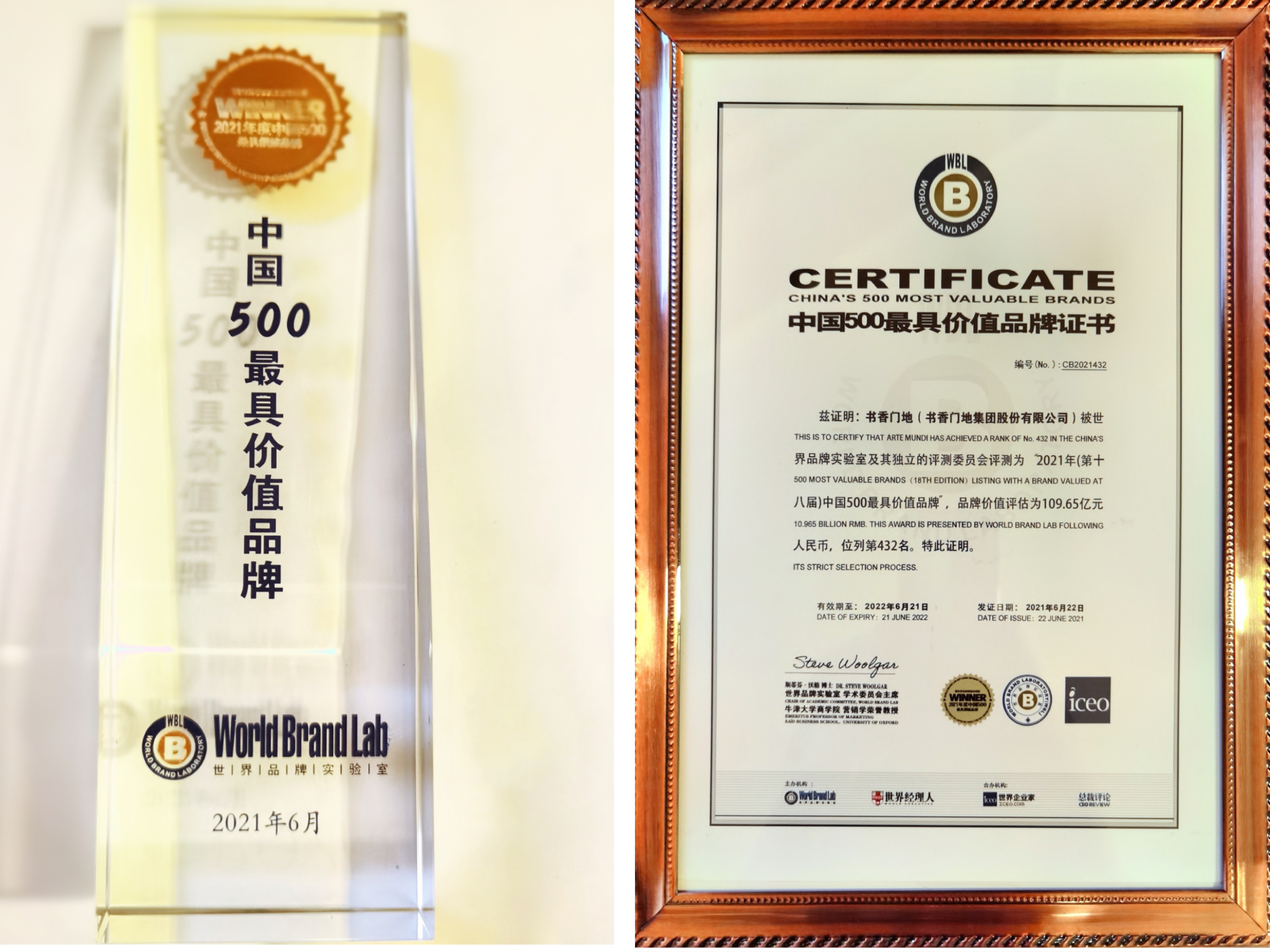 6月22日,由世界品牌實(shí)驗(yàn)室(World Brand Lab)主辦的第十八屆“世界品牌大會(huì)”在北京舉行。本屆大會(huì)主題為“可持續(xù)品牌助推公司增長(zhǎng)”,書香門地集團(tuán)受邀出席,與來(lái)自世界各地的專家、學(xué)者、企業(yè)家探討學(xué)術(shù)前沿,共襄品牌盛宴。大會(huì)發(fā)布了2021年《中國(guó)500最具價(jià)值品牌》分析報(bào)告,在這份基于財(cái)務(wù)數(shù)據(jù)、品牌強(qiáng)度和消費(fèi)者行為分析的年度報(bào)告中,書香門地集團(tuán)以109.65億元的品牌價(jià)值,榮登《中國(guó)500最具價(jià)值品牌》排行榜。