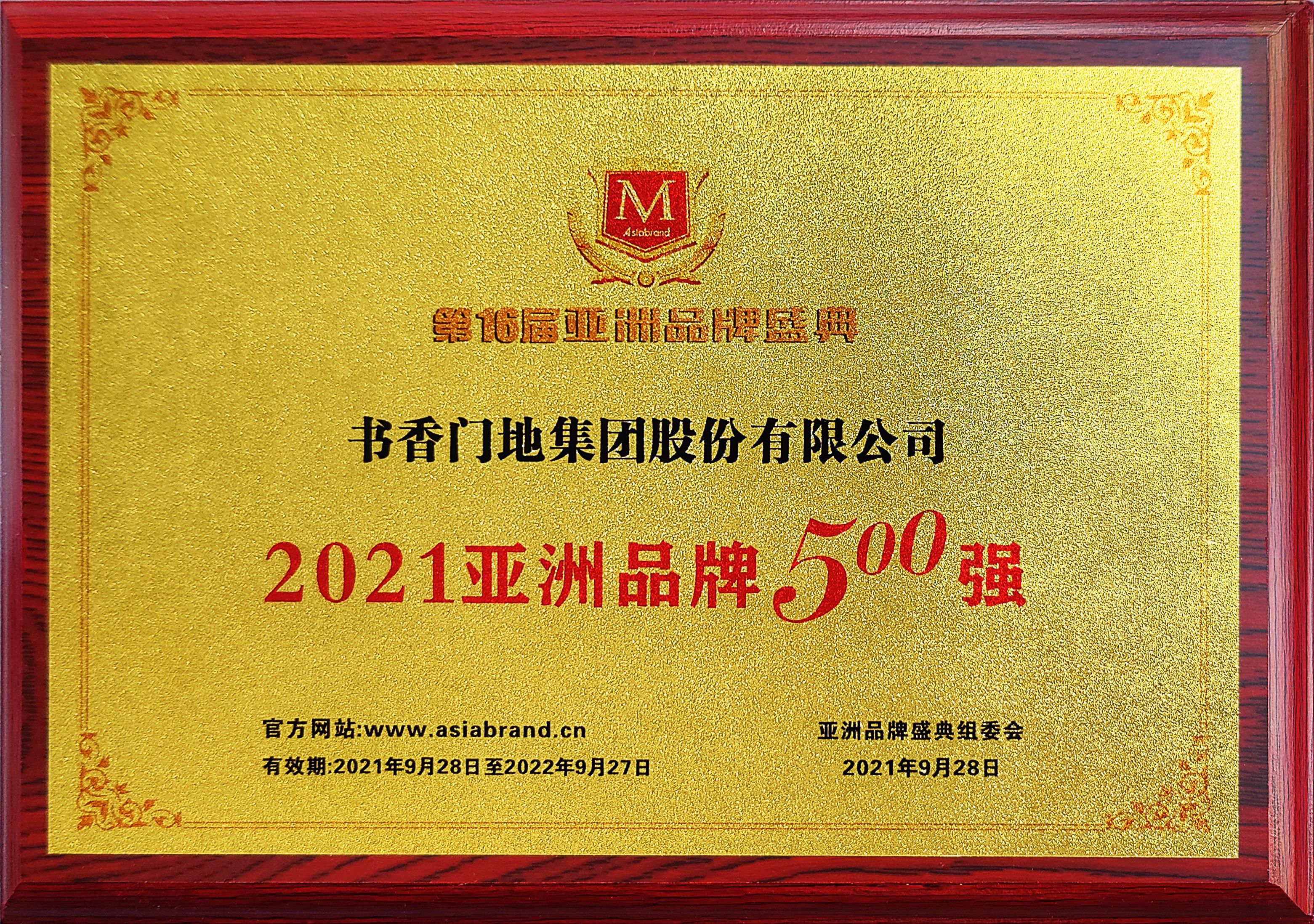 由專業品牌評價機構Asiabrand發起,聯合中國亞洲經濟發展協會、一帶一路總商會、《環球時報》社、澳門商報、東盟-中國工商總會、亞太第一衛視共同主辦的第16屆亞洲品牌盛典在海口市隆重開幕。書香門地集團與華為、阿里巴巴、中國工商銀行、騰訊、豐田、中國平安、三星、中國建設銀行、索尼、中國人壽等品牌共同登榜“2021亞洲品牌500強”榮譽。