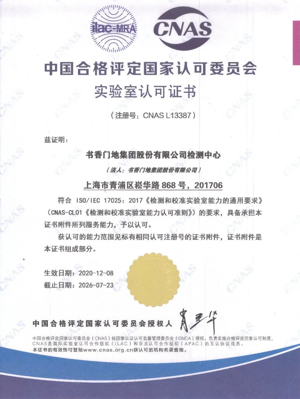 書香門地檢測中心在5月抓住機會積極報名參加了關于人造板表面耐磨、甲醛釋放量和靜曲強度檢測項目的能力驗證。8月3日完成了能力驗證活動,10月13日收到了3份能力驗證結果均為滿意的通知單。本次結果表明了我司檢測中心的檢測能力能夠持續滿足檢測方法和認可準則的要求,能夠保證公司產品檢測結果的有效性。