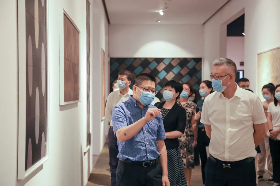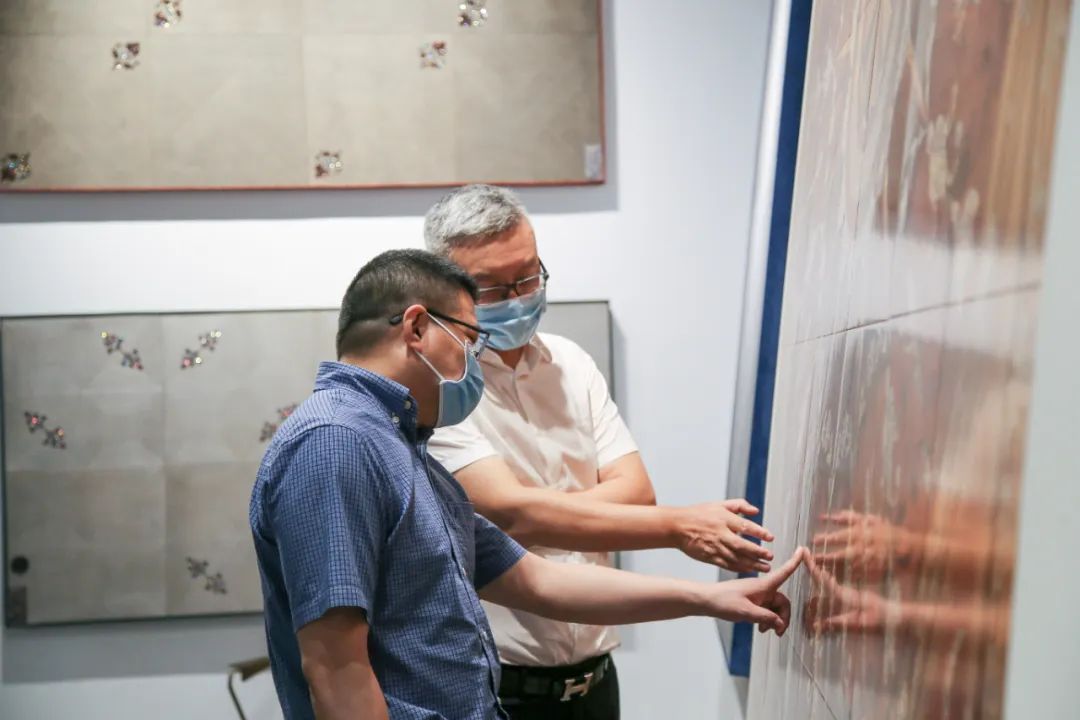 肖區(qū)長(zhǎng)一行先后參觀了書香門地美學(xué)總部基地、書香門地美學(xué)展廳,了解書香門地企業(yè)情況,零距離接觸上千款如藝術(shù)畫作般的美學(xué)地板。領(lǐng)導(dǎo)一行不時(shí)觸摸地板質(zhì)感,就地板結(jié)構(gòu)、耐磨度、工藝制造等問題詢問,對(duì)書香門地創(chuàng)新設(shè)計(jì)和材料融合跨界工藝給予充分肯定和高度評(píng)價(jià)。