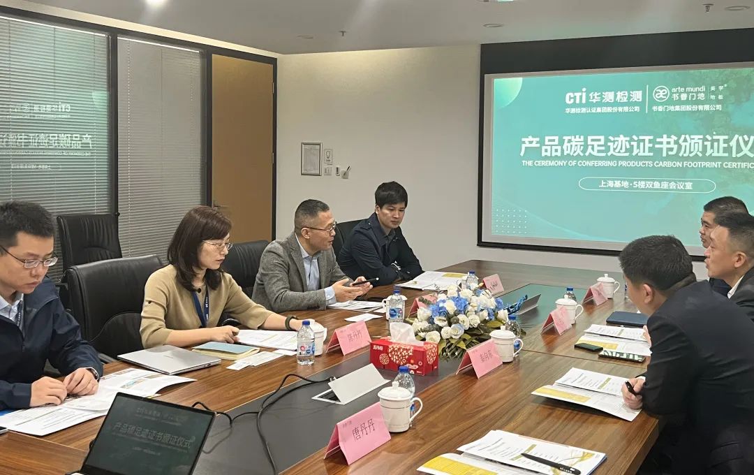 10月18日,書香門地集團“產品碳足跡”證書頒證儀式在CTI華測檢測上海基地舉行。書香門地集團董事長助理兼戰略客戶部總經理王波、采購部總經理秦向東、質量部總經理助理余波,CTI華測檢測集團副總裁曾嘯虎、建筑與工程產品線甲方及地產業務負責人陳丹丹、華測認證華東區上海業務部負責人張維懌、商業建材上海業務部負責人趙春陽、經理談靜超出席頒證儀式。