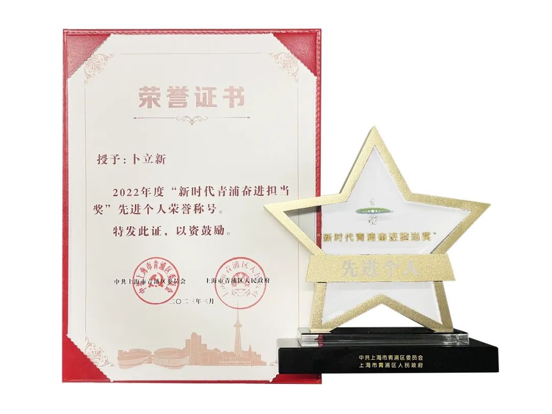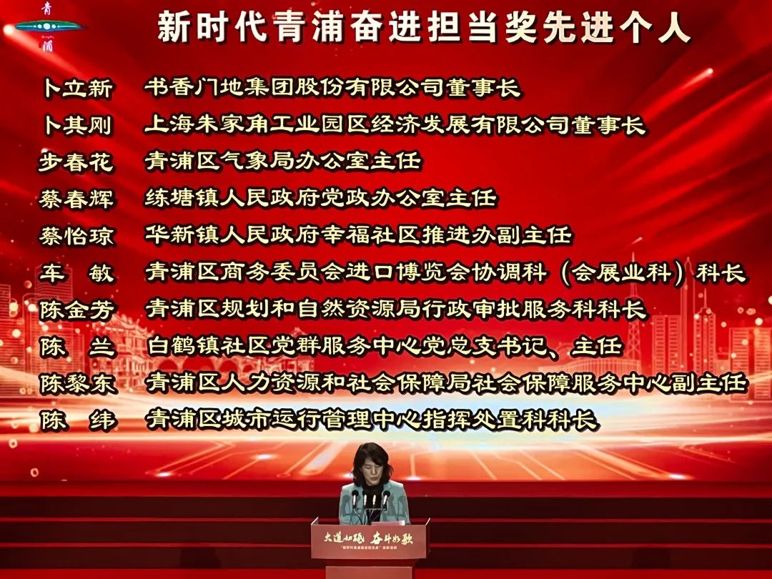 3月23日,“大道如砥 奮斗如歌” 2022年度“新時代青浦奮進擔當獎”表彰在青浦文化劇場舉行,青浦區委書記徐建,區委副書記、區長楊小菁,區人大常委會主任朱明福,區政協主席曹衛東,區委副書記張權權等區四套班子領導出席并為先進集體和先進個人頒獎。書香門地集團董事長卜立新受邀出席頒獎典禮,并榮獲2022年度“新時代青浦奮進擔當獎”先進個人榮譽稱號。