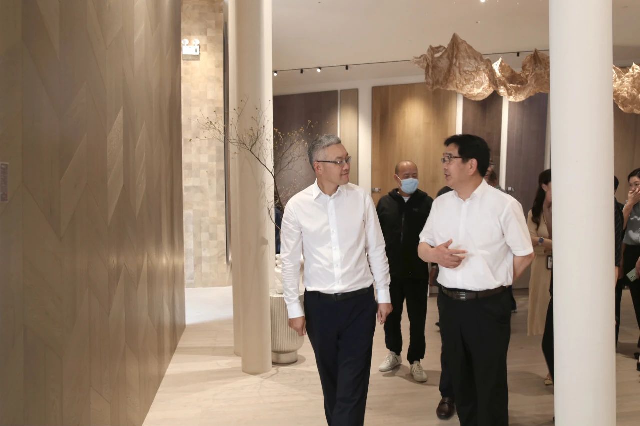 朱明福主任表示書香門地美學(xué)產(chǎn)品突破大眾對地板傳統(tǒng)認(rèn)知,將應(yīng)用創(chuàng)新發(fā)揮極致,美學(xué)地板名副其實。參觀過程中,他不時觸摸地板質(zhì)感、欣賞紋理和工藝設(shè)計,并就產(chǎn)品鑲嵌工藝、環(huán)保等級及市場銷售情況詳細(xì)詢問,對書香門地創(chuàng)新研發(fā)工藝、產(chǎn)品設(shè)計理念、跨界融合發(fā)展予以高度評價。他鼓勵書香門地充分發(fā)揮產(chǎn)業(yè)優(yōu)勢和資源優(yōu)勢,堅持創(chuàng)新融合、深度整合,做優(yōu)做大做強,全力推動青浦經(jīng)濟社會高質(zhì)量發(fā)展。