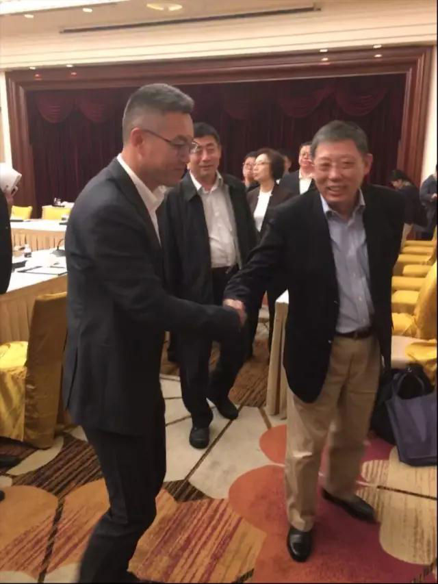 全國人大財經委副主任委員楊雄在聽取報告后與卜董握手