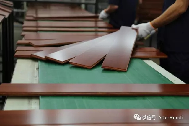 奮斗在生產一線的員工,為實現“家,就是藝術殿堂”這一理念,嚴苛地分選原料、精確地手工切割、嚴謹地調色工藝、悉心地手工擦色使每一款地板都灌注了書香門地匠人們的匠心匠藝。