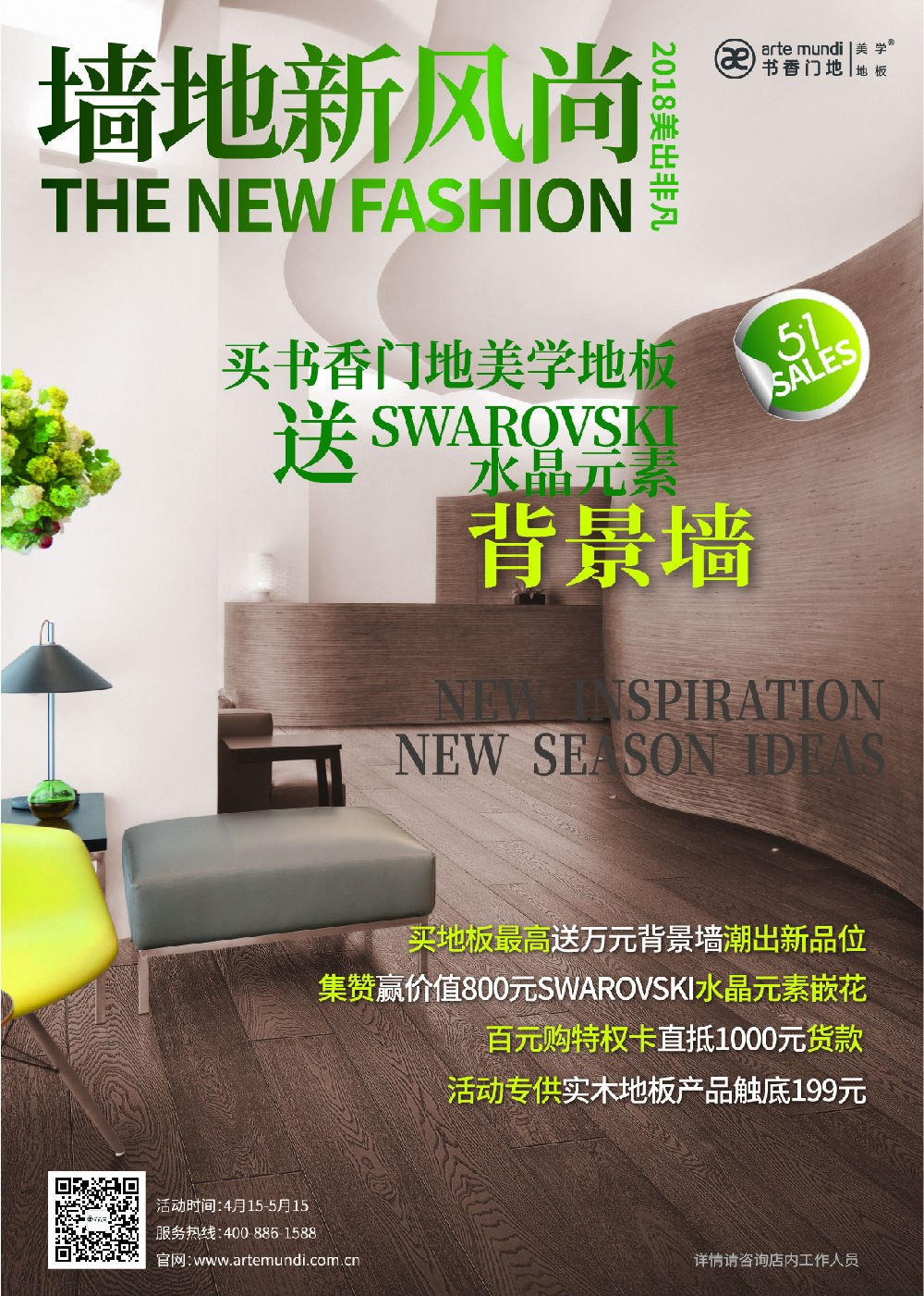 書香門地美學地板美出非凡,五一促銷活動正式啟動啦!買美學地板送施華洛世奇水晶元素背景墻!預購從速!