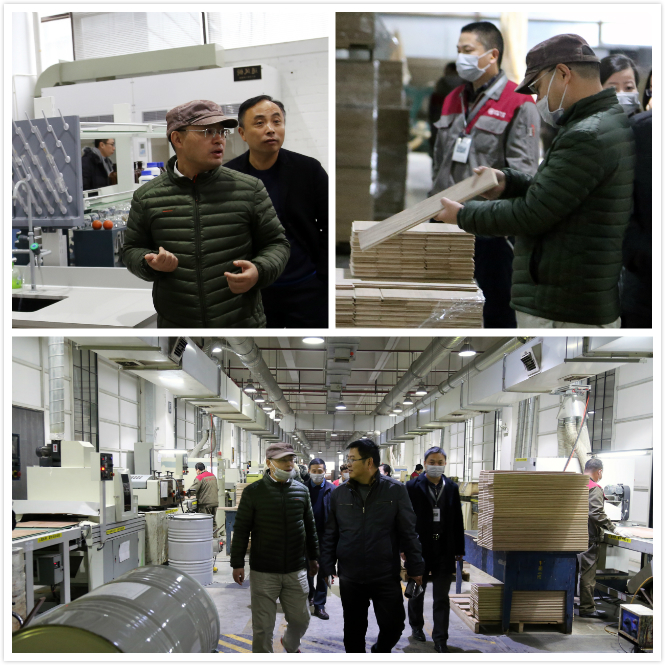 ▲中國林產工業協會地板委考察組參觀書香門地生產車間