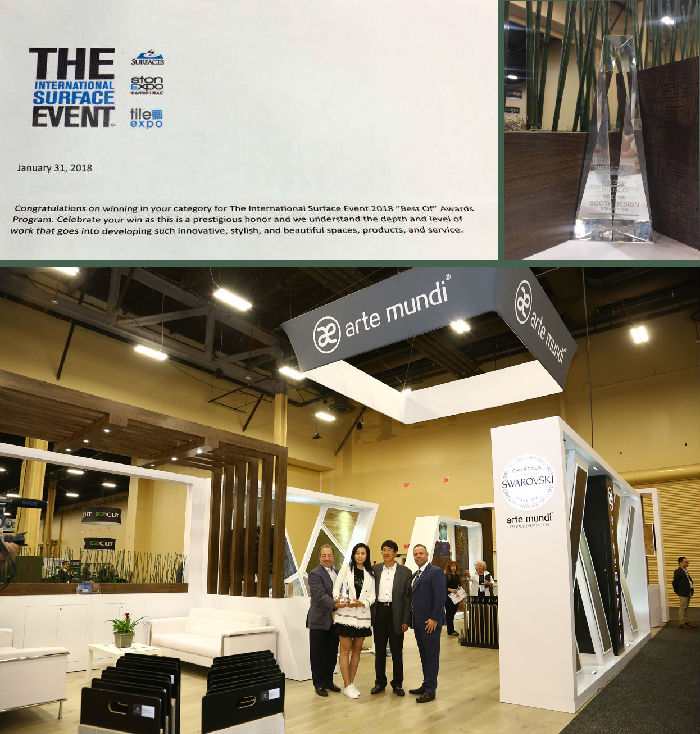 Congratulations on winning in your category forThe international Surface Event 2018”Best OF”Awards Program.Celebrate your win as this is a prestigious honor and we understand the depth and level of work that goes into developing such innovative, stylish,and beautiful spaces,products,and service.