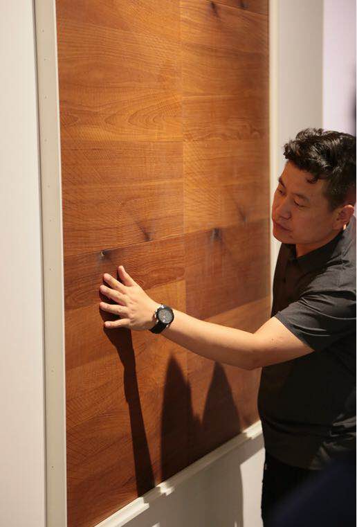 ▲市場部總經理徐天佩講解美學地板設計潮流趨勢