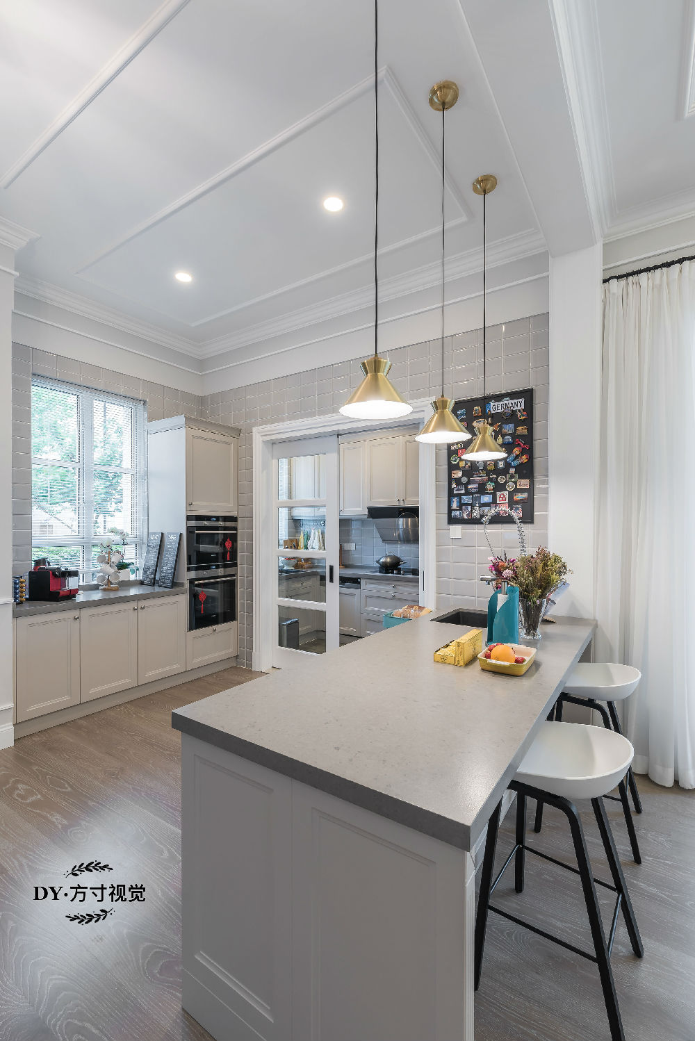 整屋以灰、白、藍 為整體軟裝的主色調,從細節中逐漸展現出整體內部的風貌——簡美式。