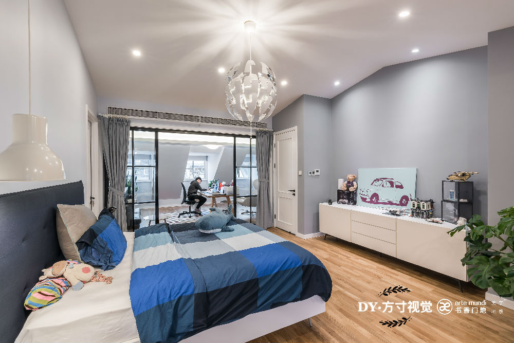 孩子房間的設計主要兼具舒適、安全、實用為主,整體色調與整屋風格一致。00后的小孩有了自己的小秘密,不像小時候依賴父母,希望有自己的獨立空間,房間似乎成了他們的另一個“朋友”,將臥室與學習區域隔開,有了更大的活動空間,不受拘束。不規則地開放式設計更營造出可以激發靈感的氛圍,結合書香門地強化美學系列產品更是成為照亮孩子夢想和陪伴成長的空間。
