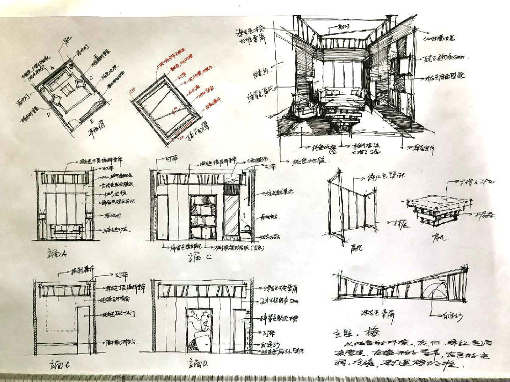 手繪是一種直觀而生動的方式,是設計靈感的記錄也是方案構思到實現的第一步。鄧詠老師從業20年始終堅持手繪作圖,他希望把他的設計想法能第一時間傳達給用戶。接到客戶的訴求后,鄧老師在設計前通過手繪的方式把客戶想要的提前構思,以生活理念和功能需求為核心,用設計語言充分展現在畫紙上,立將每個細節都能立體地得以呈現,手繪的方式讓鄧老師與客戶建立了無障礙溝通,做到“連外行人都看得懂的設計”。