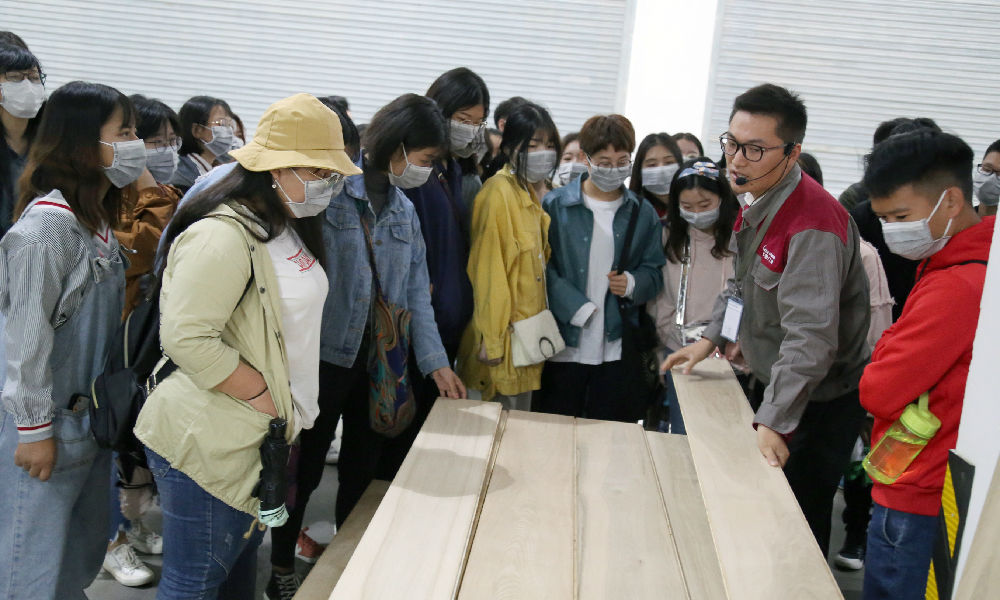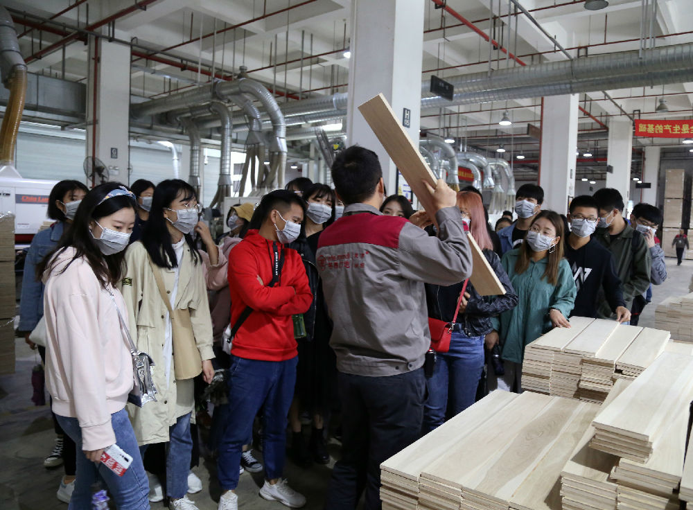 河南工業(yè)大學(xué)的同學(xué)們首先參觀了書香門地生產(chǎn)中心和品質(zhì)檢測(cè)中心,了解前沿的地板制造工藝、匠心獨(dú)具的手作工藝和嚴(yán)苛的品質(zhì)管理標(biāo)準(zhǔn)。