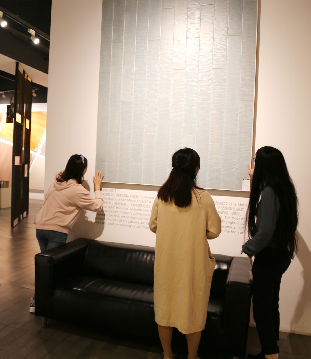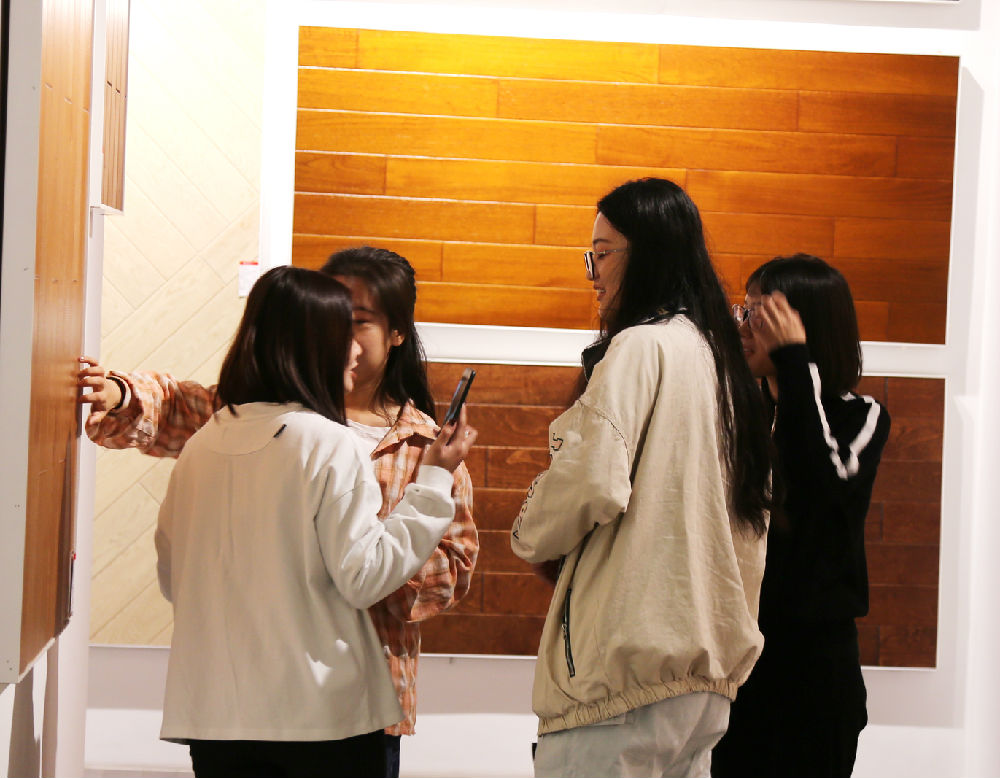 隨后,同學(xué)們走進(jìn)書香門地上千平的畫廊式展廳內(nèi),近千款美學(xué)地板如藝術(shù)畫作般淋漓盡致地呈現(xiàn),宛如置身地板行業(yè)的“藝術(shù)博物館”。同學(xué)們感慨藝術(shù)地板的獨(dú)特設(shè)計(jì),非常珍惜此次拓寬眼界、積累藝術(shù)創(chuàng)意靈感的機(jī)會(huì)。