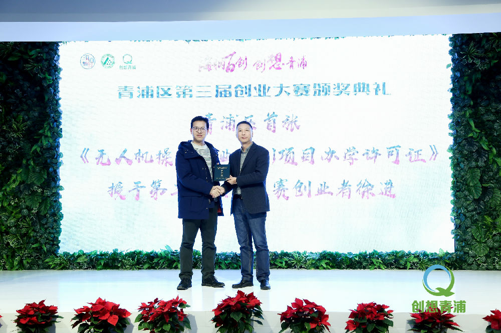 ▲上海青浦區(qū)人社局將授予落地在青浦眾創(chuàng)中心內(nèi)的上海空拓培訓(xùn)學(xué)校有限公司首張無人機(jī)操作職業(yè)培訓(xùn)項目辦學(xué)許可證。