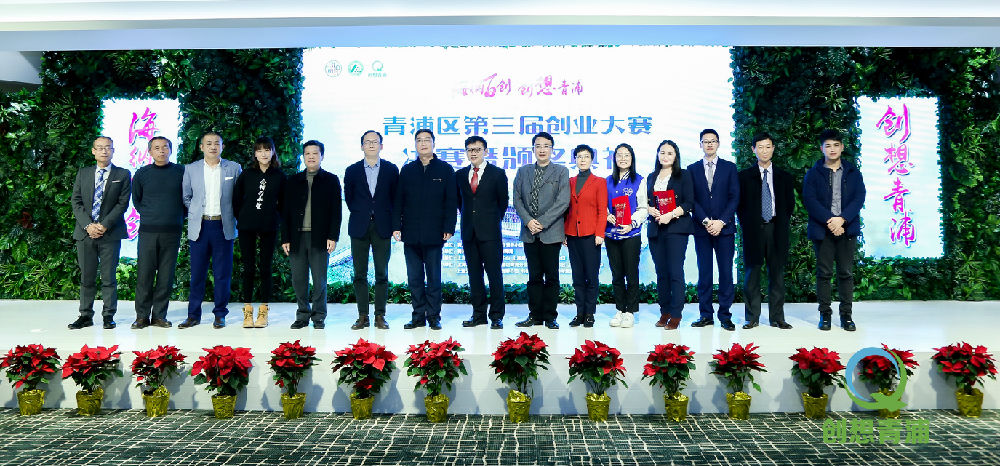 ▲第三屆上海青浦創(chuàng)業(yè)大賽決賽選手與政府領(lǐng)導(dǎo)以及專家評審合影留念