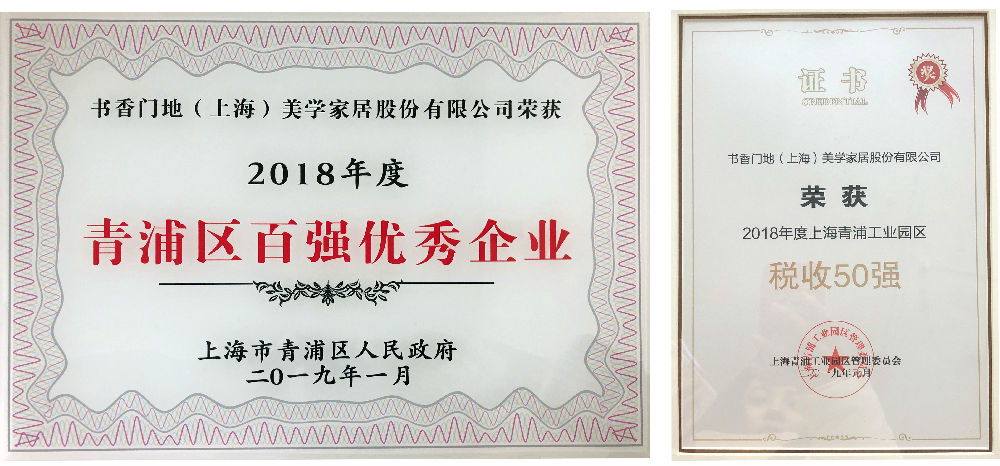 喜訊頻繁,捷報紛傳。此前書香門地還斬獲了“2018年度上海青浦工業園區稅收50強企業”榮譽。上海青浦工業園區肯定了書香門地對城市經濟發展的突出貢獻。