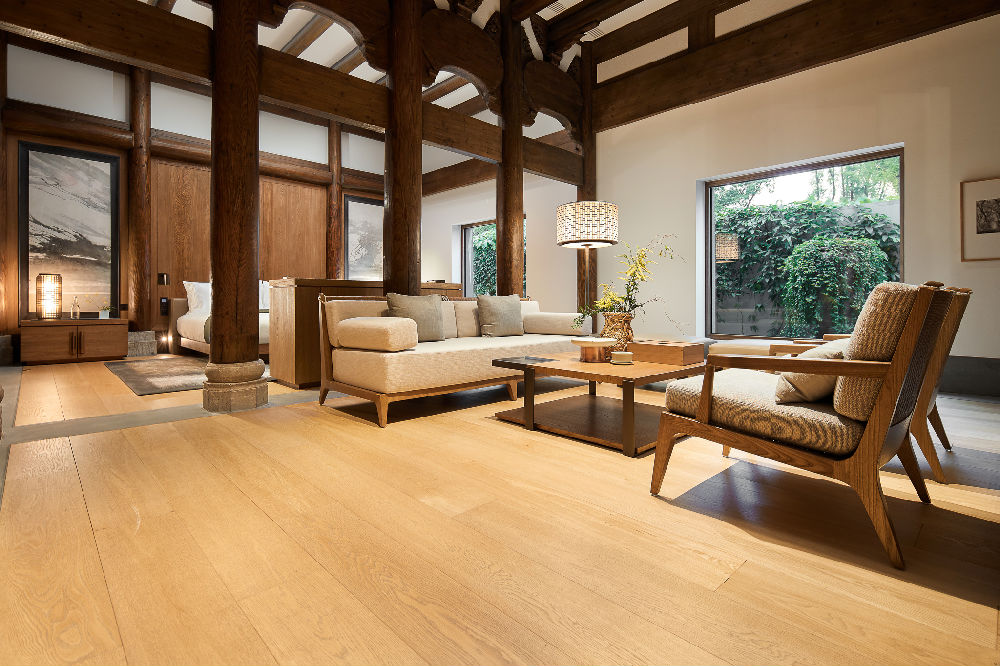 ▲上海養云安縵酒店采用書香門地染凈系列美學地板