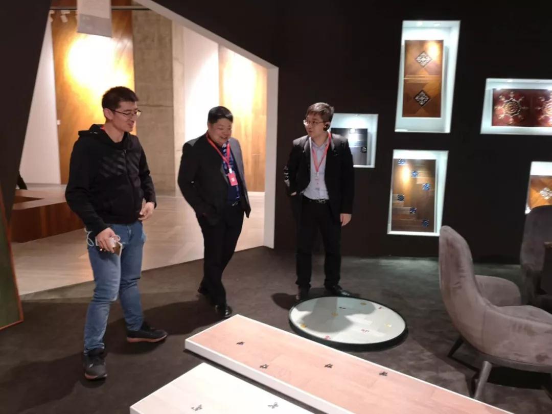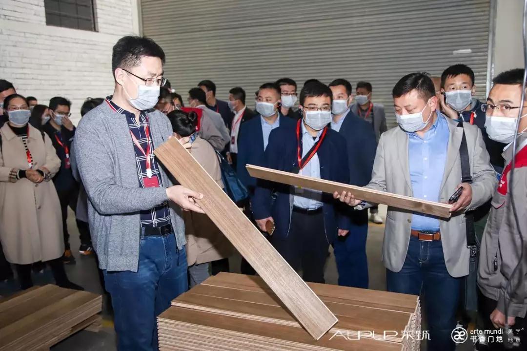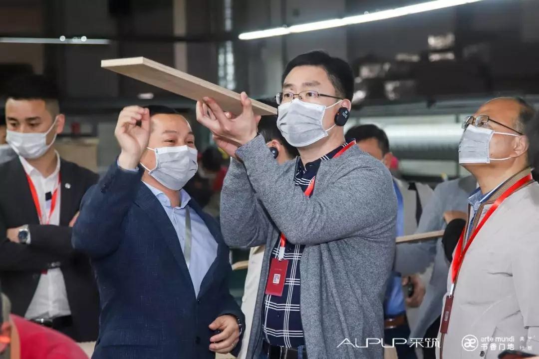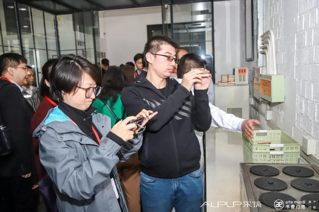 隨后,考察團在大客戶部施劍和唐海英兩位副總經理的引導下參觀考察了檢測中心、生產車間以及美學地板展廳。