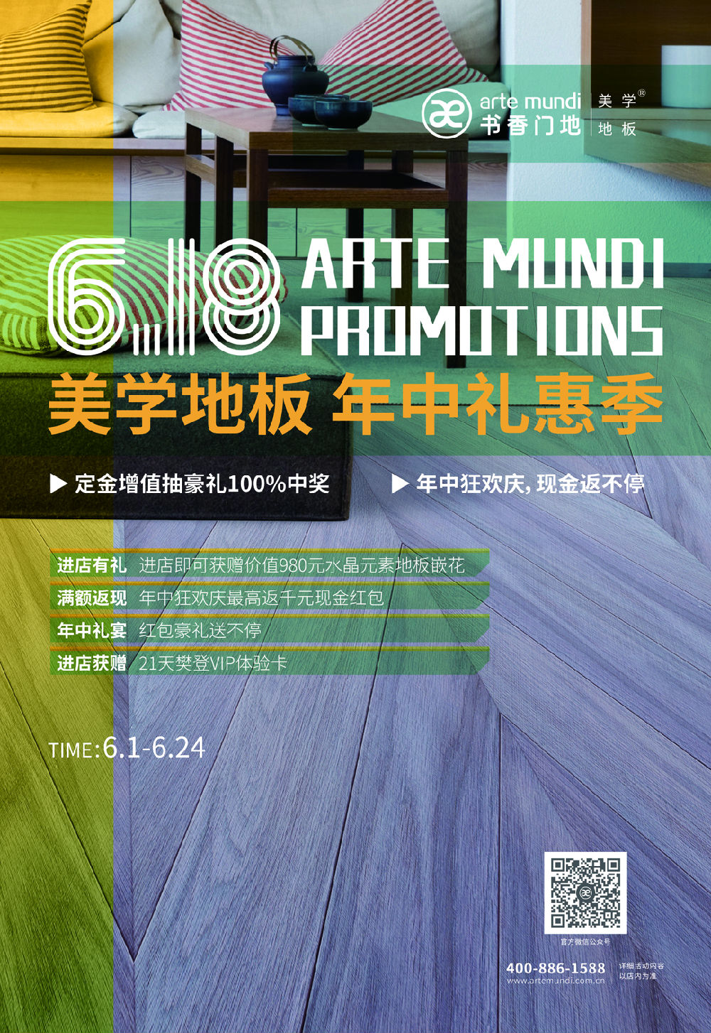 618年中狂歡慶,現金返不停! 6月1日-6月24日,進店購買書香門地美學地板,共同見證中國高端質造傳奇,更有機會獲享價值3362元的“上海浪漫三日游”年票!
